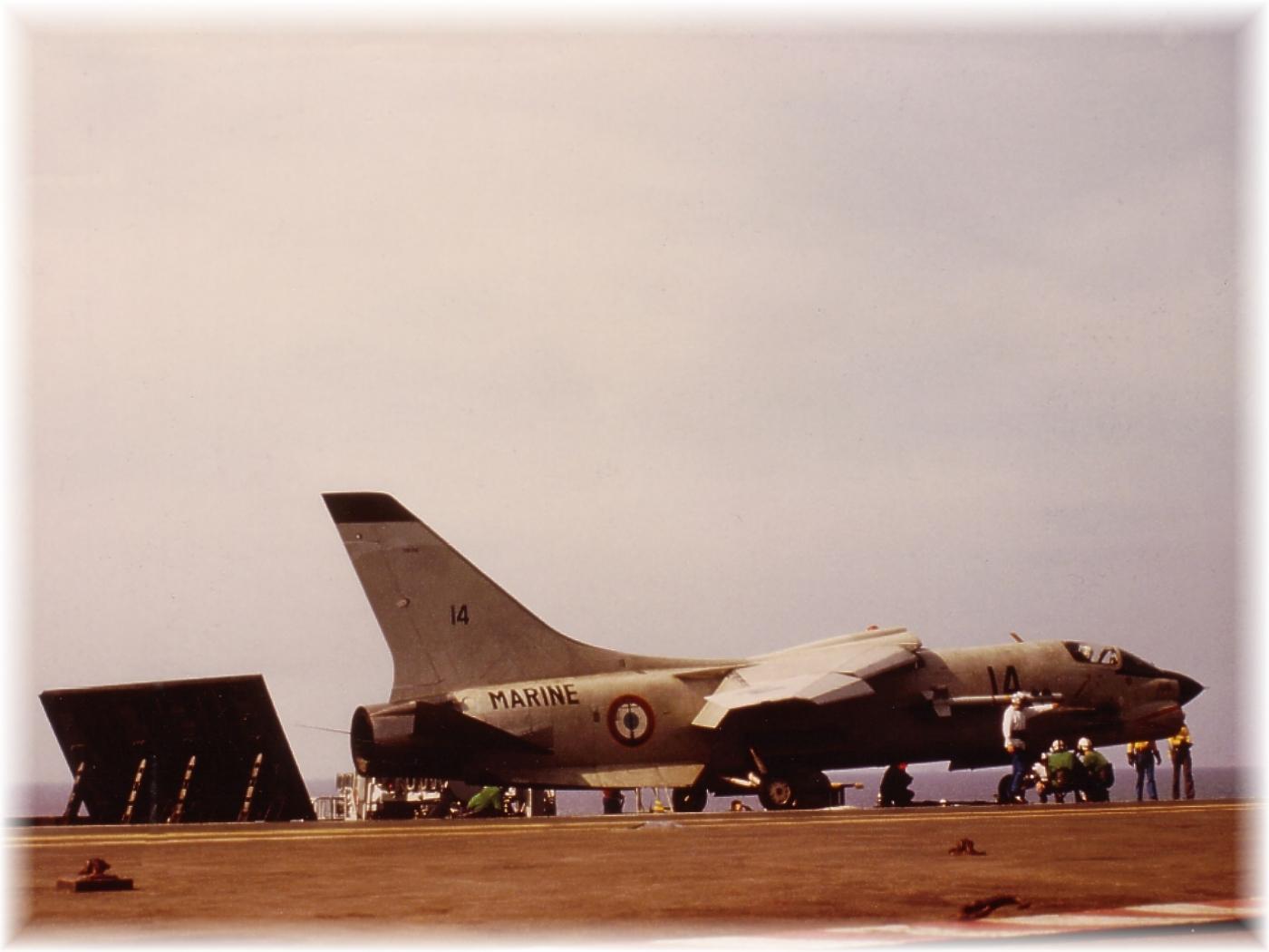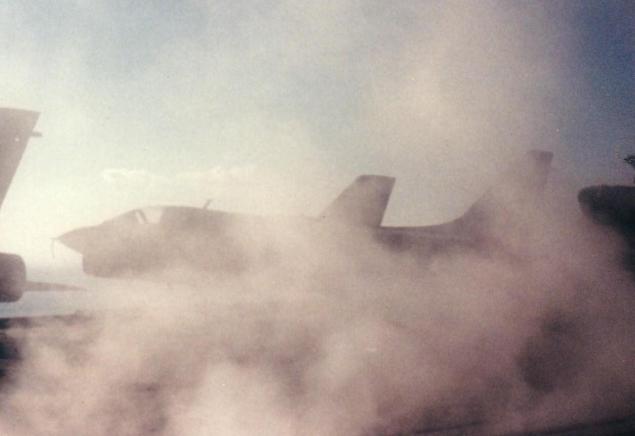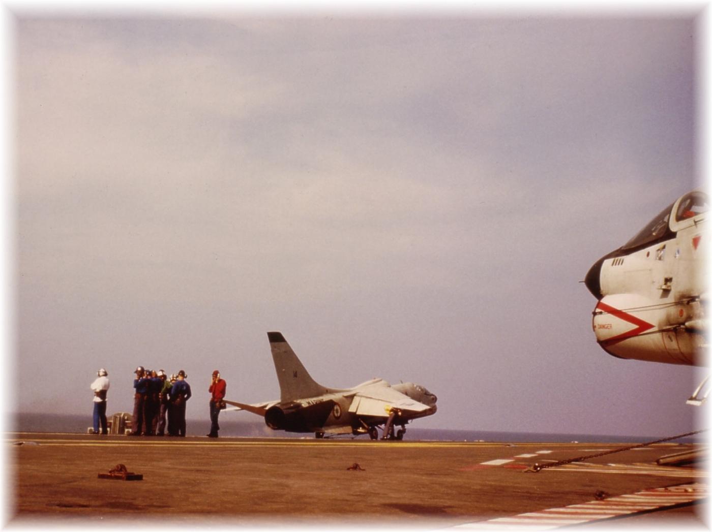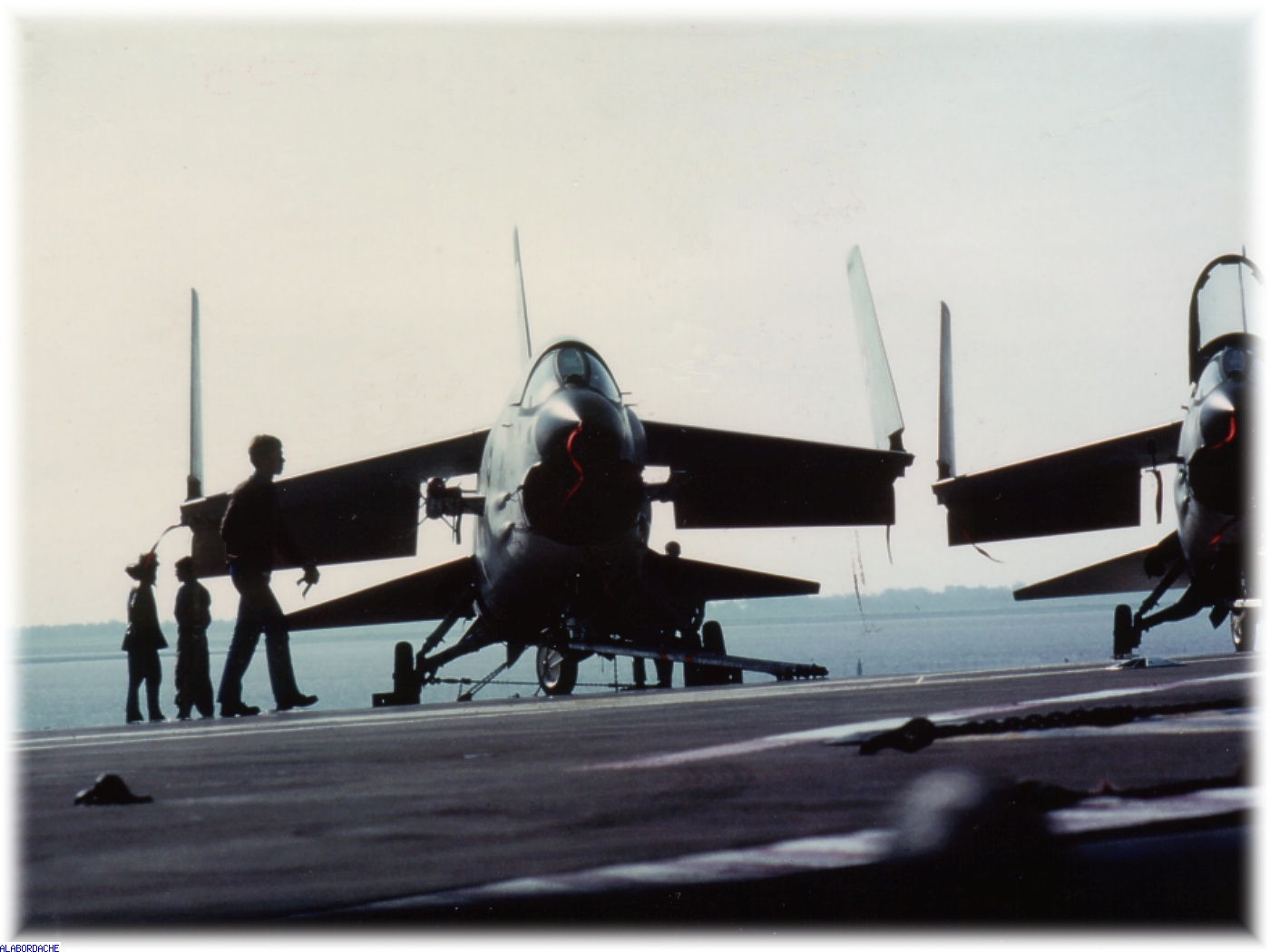 Crusader derriere la vapeur de la catapulte avant du Clémenceau