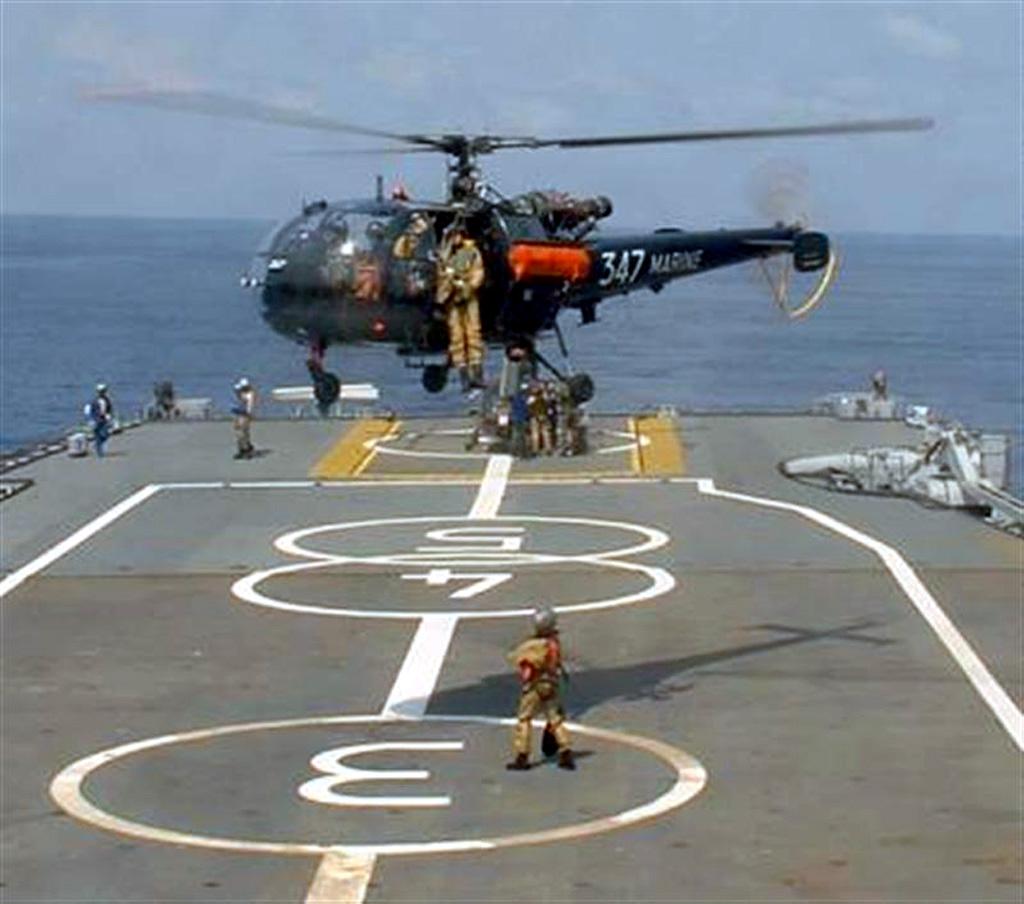 Alouette de l'ESHE 22S - campagne GEAOM 2002-2003 séance d'appontage sur le Georges Leygues
