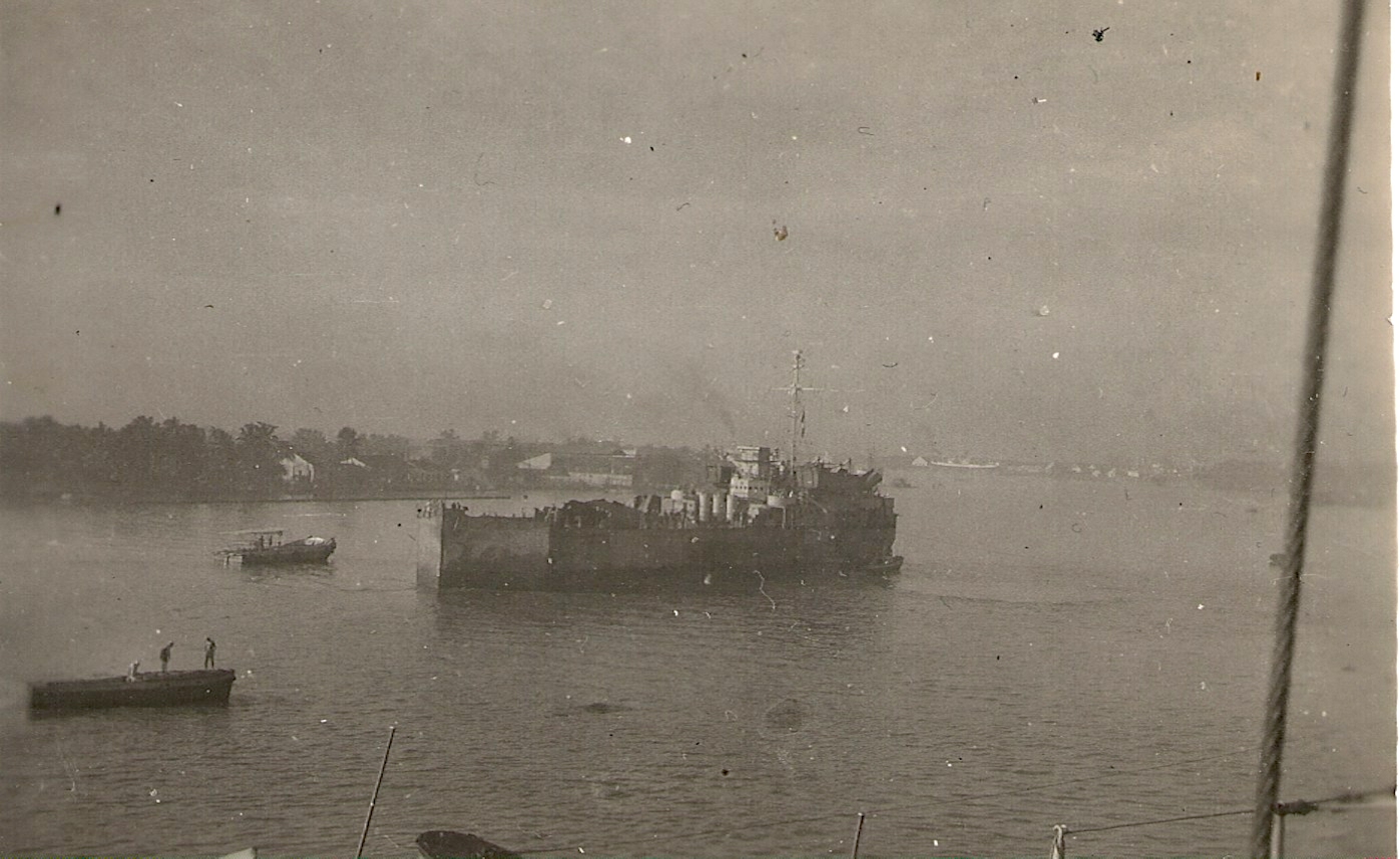 |  Après les réparations effectuées par le "JULES VERNE" Rentrée de l'ADOUR à Saîgon ! Même le ciel était triste !!!