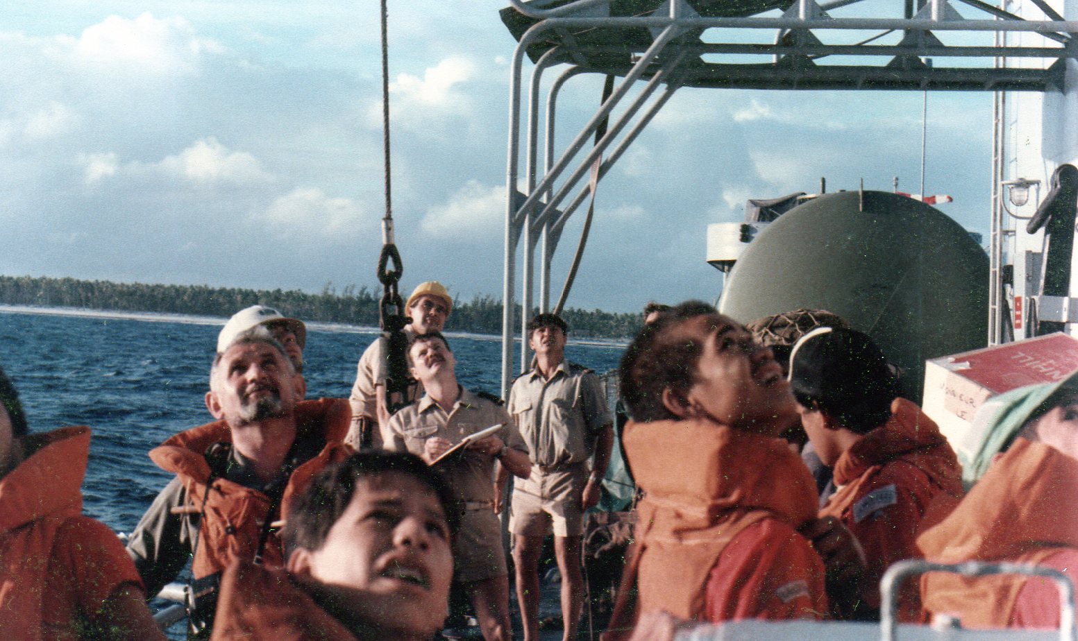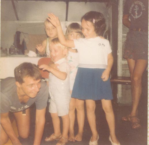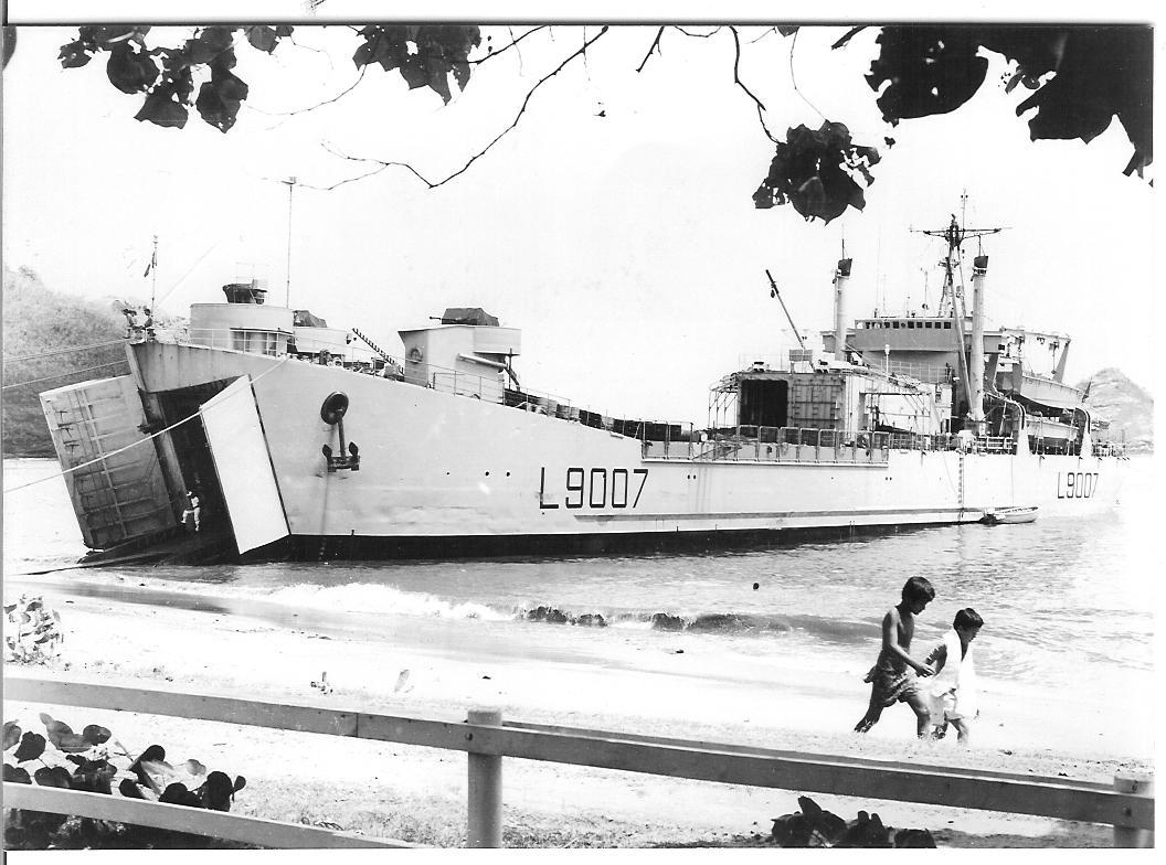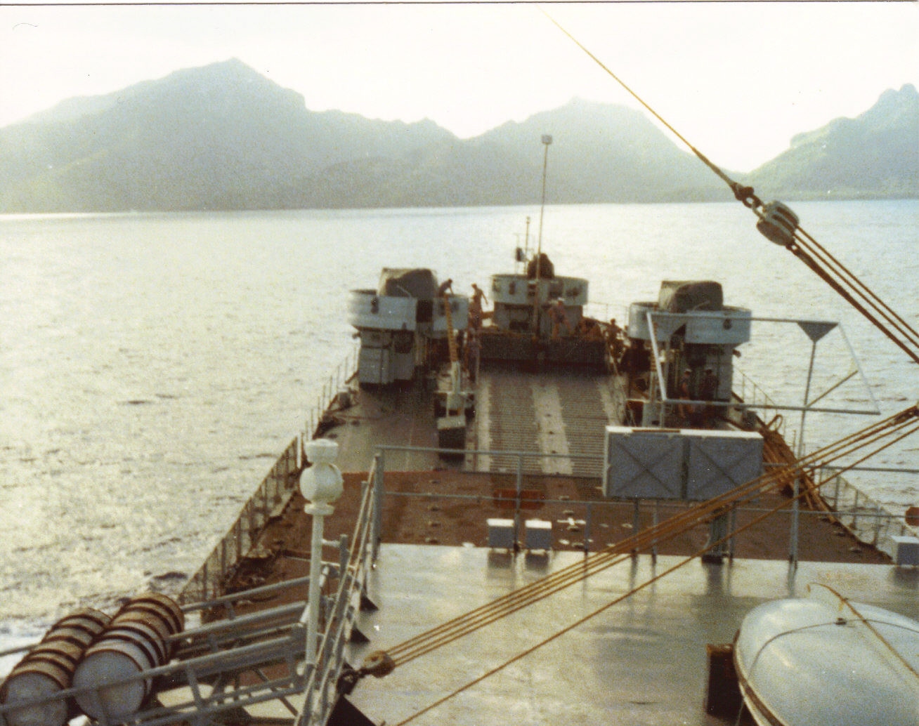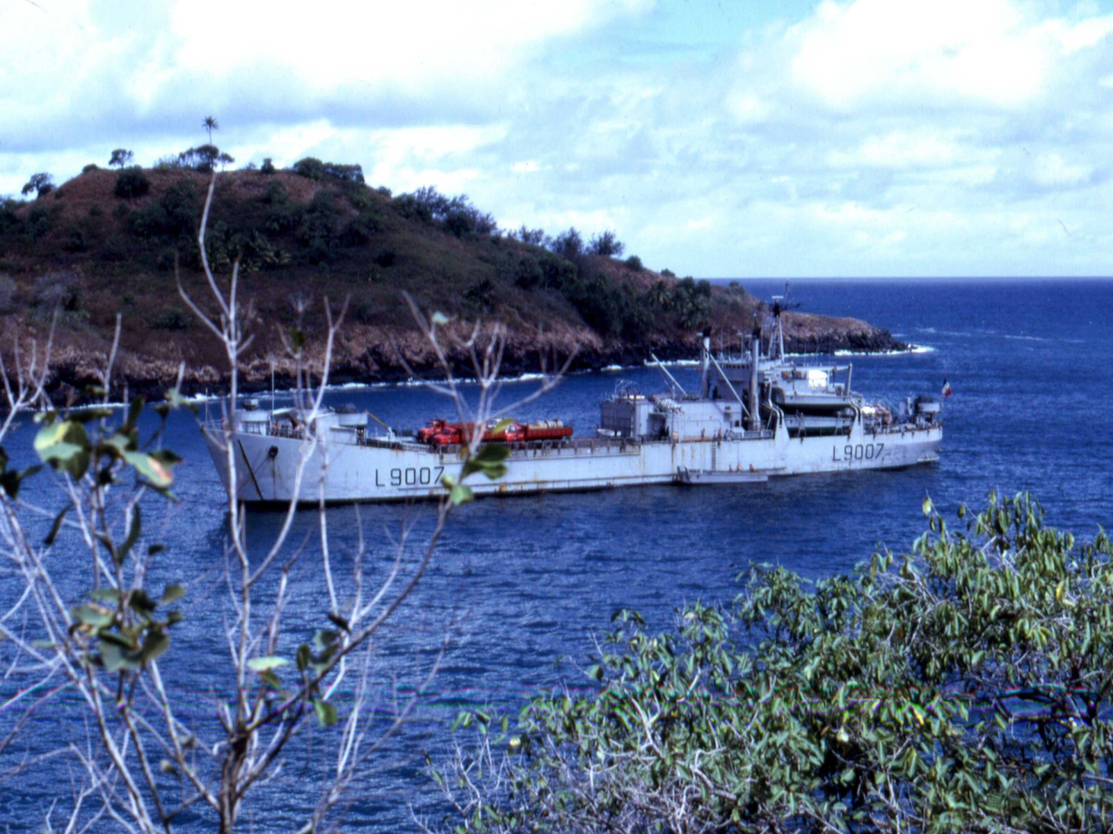 Le BDC TRIEUX dans une baie d'Hiva Hoa en 1975 ( Marquises ) ( Alain Potier QM1 Elect de 73 Ã 75 )