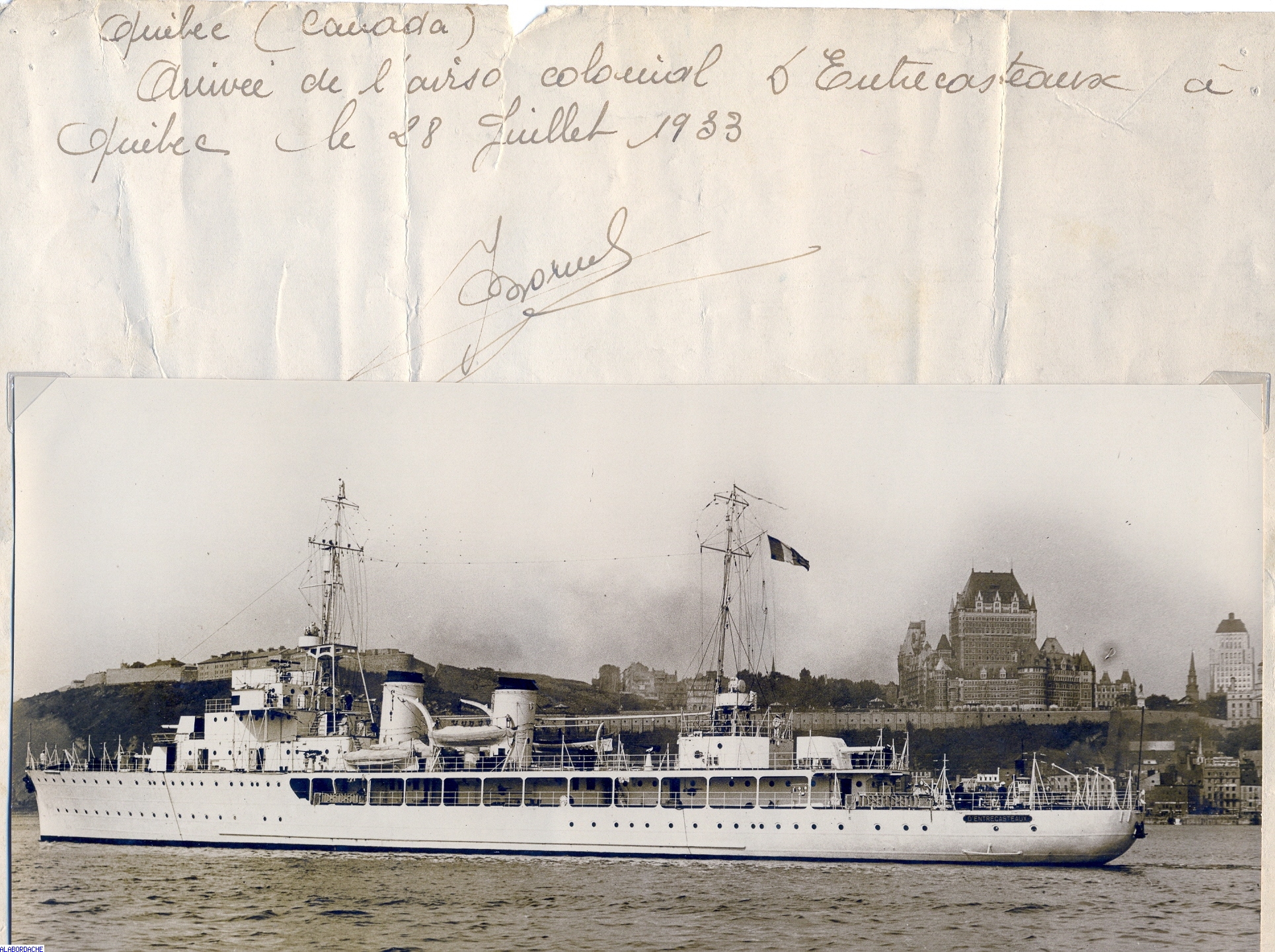 1933 : Le D'Entrecasteaux au Québec
