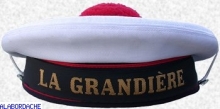 Bonnet de marin avec le ruban légendé "La Grandière". Vue la tenue du "bacchi" il s'agit sans nul doute de celui du batral (BAtiment de TRAnsport Léger) "La Grandière" actuellemement en service et non celui de l'aviso colonial qui fut longtemps la conserve de la vieille "Jeanne"(1932-1964). (Commentaire Daniel Maurice. Photo X)