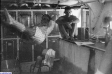 Détente dans un poste d'officiers élèves sans doute en attente d'être permissionnaires puisque les "midships" portent la tenue 22.