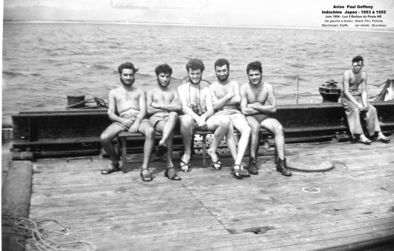 Indochine - Japon 1953 à 1955 Juin 1954 - Les 5 Barbus du Poste AR (de gauche à droite) : Allard, Piro, Pelchat, Marchesani, Eteffe (en retrait) : Bruneleau