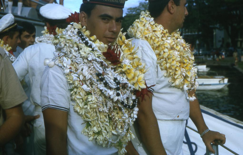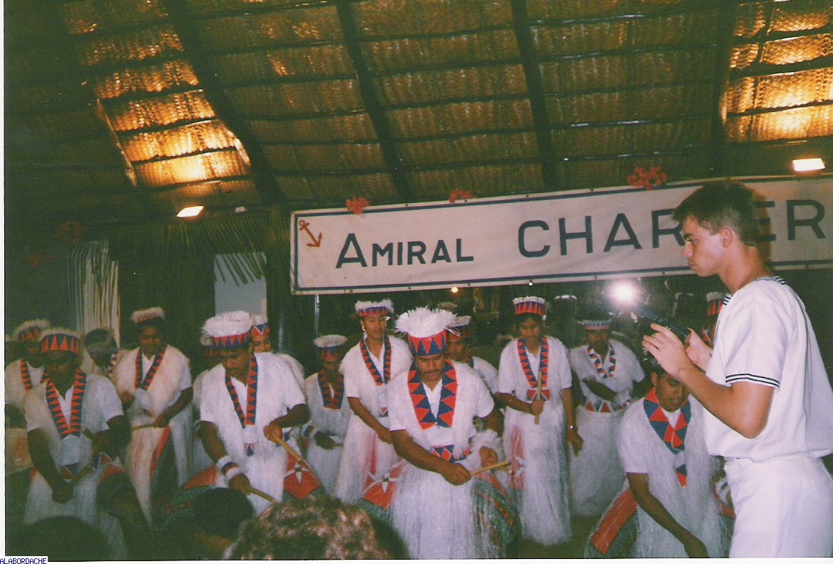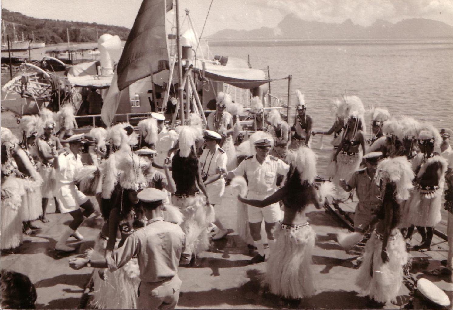|  ( photo paul Rabaland ) Mlot torpilleur Labaste Marquisien de naissance . Charner 66-67. Arrivée à Papeete. Bien le bonjour du p'tit chef .