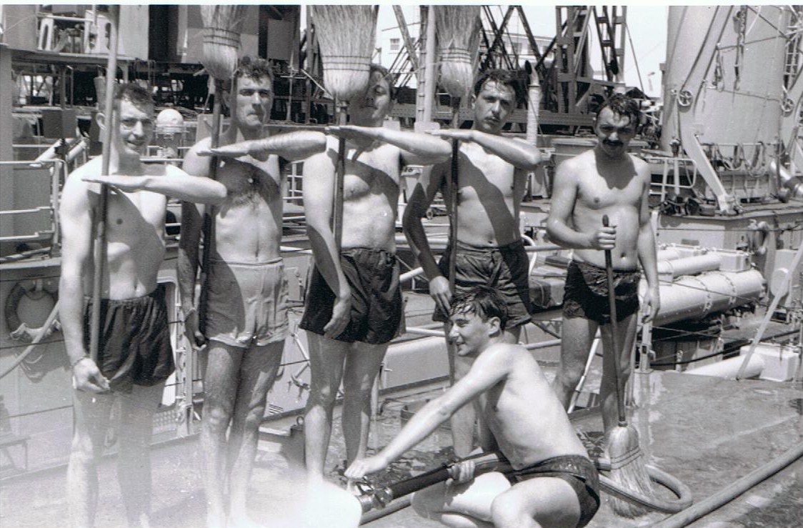 présentez armes!!!rinçage à l'eau douce après sortie en mer (1961/62)