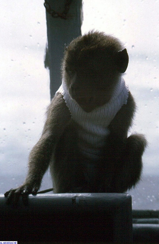 Lulu petit macaque acheté au Japon et qui deviendra la mascotte du bord et du service artillerie
