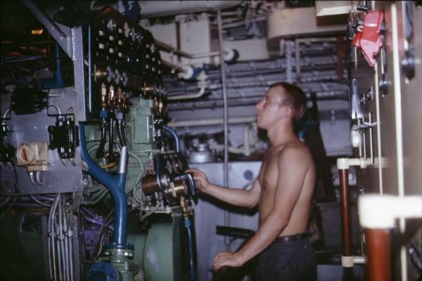 |  Jean-Pierre JATCZAK pendant le "quart" aux auxiliaires à la machine AR sur l'EV Henry 1968 !