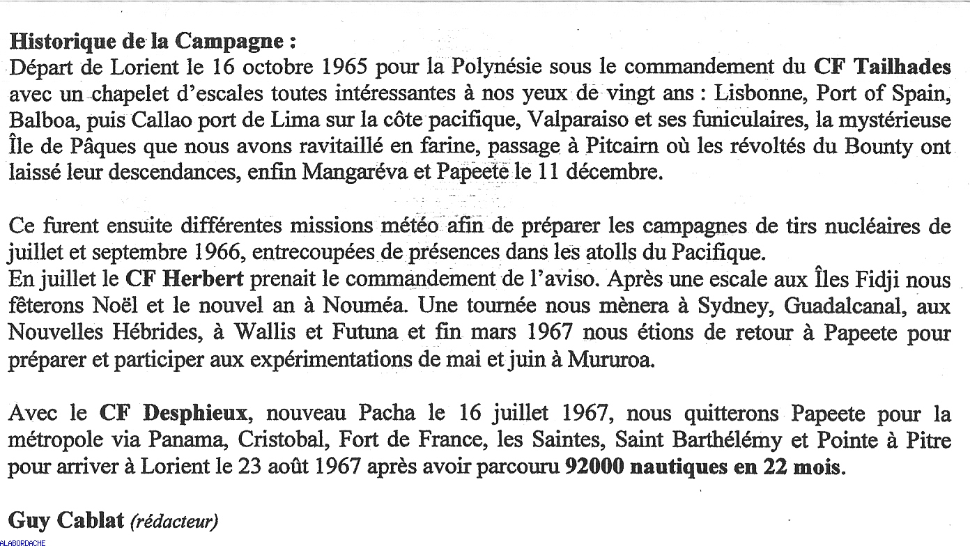 |  Départ de Toulon destination tahiti campagne 73/75