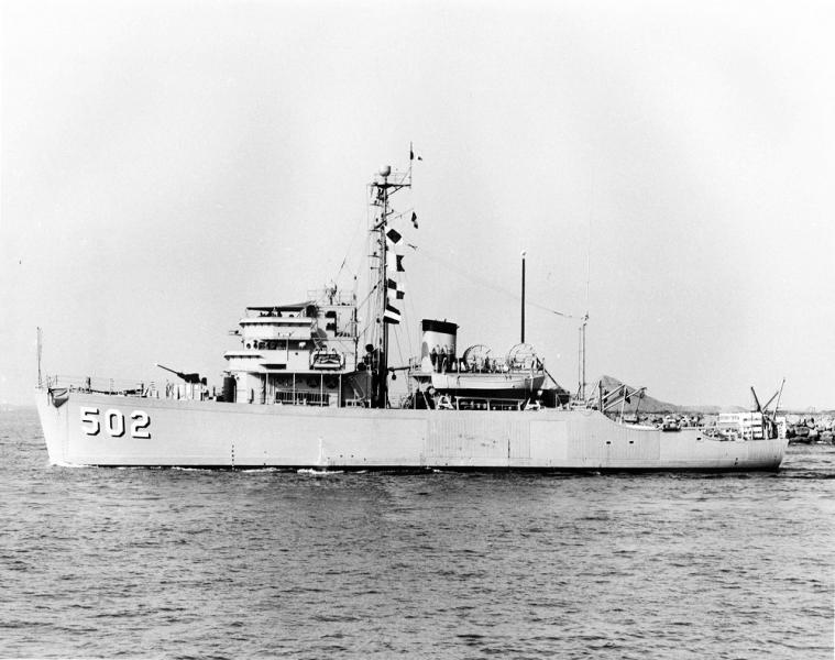Sorti des chantiers Bellingham shypyards and co sous la désignation M502, il est lancé le 6 ami 1955. Armé et livré le 14 mars 1956. Il est transféré en France comme Autun, M622, le 4 avril 1956. Il sera détruit en 1985.