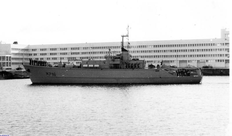 Le chasseur de mines Cérès à Cherbourg, devant le bâtiment de la 1ère Esdra.