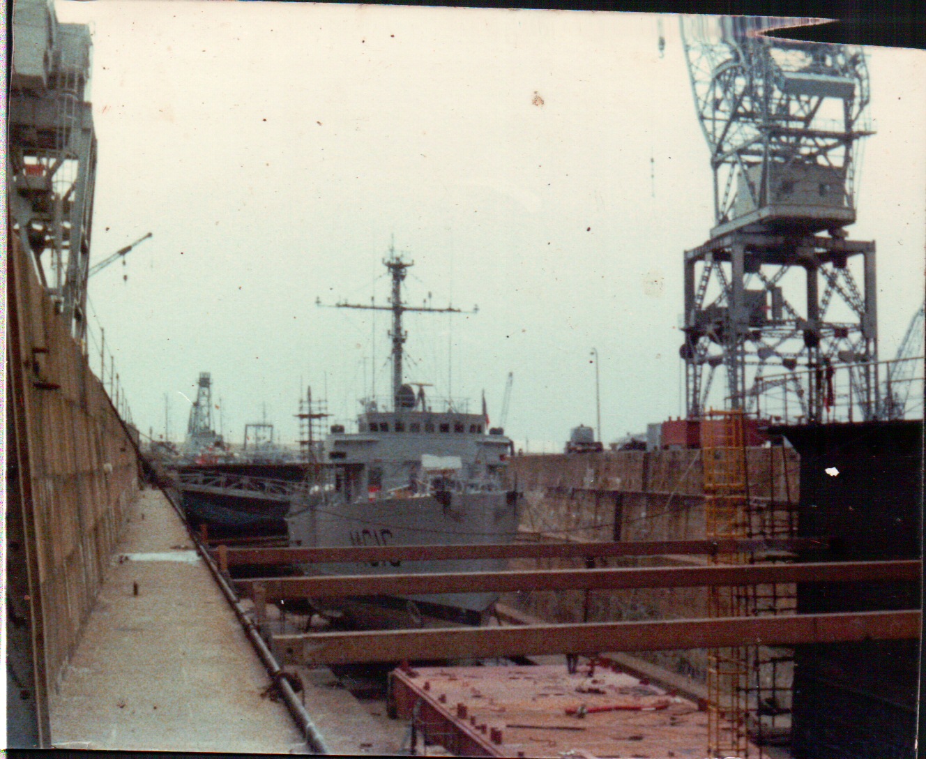 Janvier 1976 - Au bassin à Cherbourg lors de la refonte du 1er DO en Chasseur de Mines ''Type Circé''...