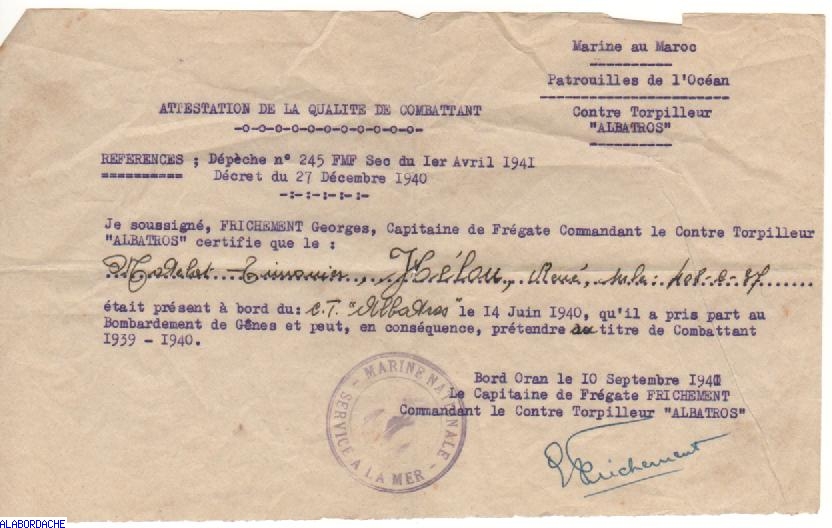 Citation de l'ordre de l'armée. Opération "Vado" le 14 juin 1940