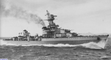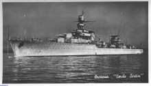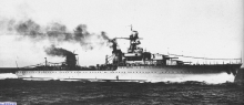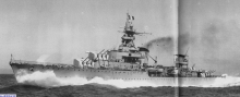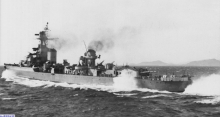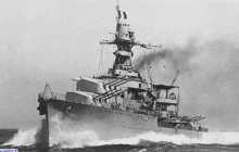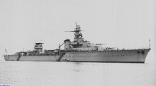 L'Emile Bertin à grande vitesse. Il avait atteint 40,5 noeuds aux essais faisant de lui le croiseur le plus rapide du monde. Il arbore dans la mature une marque de commandement d'un vice amiral d'escadre ou d'amiral.