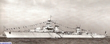 L'Emile Bertin avant la guerre. La marque d'un contre-amiral est hissée en tête de mat.