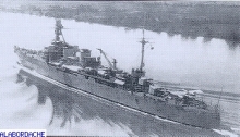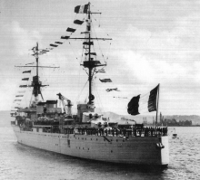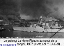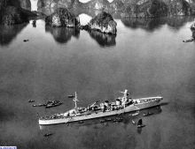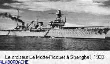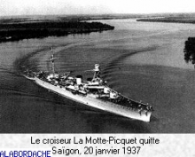 Le Lamotte Picquet mouillé peu avant la guerre dans la baie d'Along.