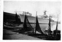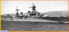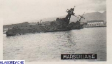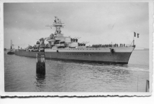 Le croiseur de 7.600 tonnes "La Marseillaise" après l'armistice de 1940 comme le montrent les marques de neutralité aux couleurs françaises peintes sur les tourelles triples de 152 mm, 2 et 3.
