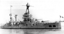 La Provence vers 1925. au sommet du mat tripode récemment installé, la conduite de tir "Vickers".