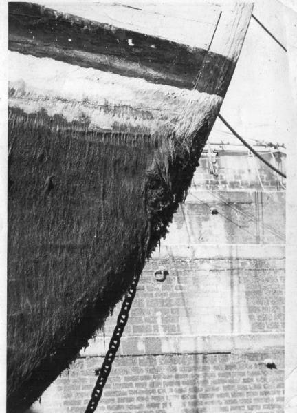 En carenage a FOPRT DE FRANCE etat de l etrave au bout d un an en Mer CARAIBES(photo Alain BRAI)