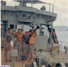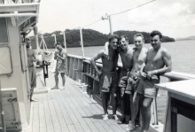 1968 - Détente à la mer : En route vers Cayenne. L'EV1 Baillot est notre meneur de jeux....