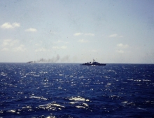 1967/68 : L'aviso-escorteur "Commandant Rivière", conserve de la "Jeanne d'Arc" au large des Saintes.