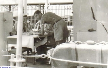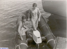 1967 : Le zodiac revient d'une liaison avec la terre. Le QM1 détect. Jean François Morardet est le patron de l'embarcation.