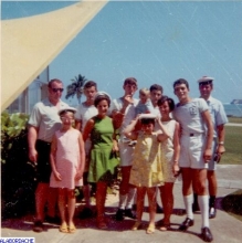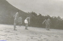 1967 : Partie de ballon sur une plage des Antilles. Au milieu, en short blanc, le QM2 élect. Jean Claude Grimard, décédé d'une longue et douloureuse maladie à 43 ans, en 1990.