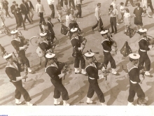 20 juillet 1967. Le bagab de Lann-Bihoué défile dans les rues de Saint Pierre à l'occasion de la visite du général de gaulle (Photo : collection Queffeuléou)