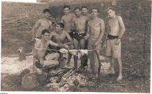 1968 : Pique-nique aux Antilles. De gauche à droite : Accroupis : Queffeuléou et Hoarau. Debout : Rivière, Thurissey , Morardet, Liautaud, Coupel et Le Maguer.