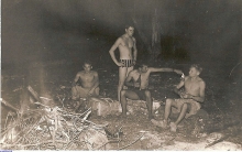 Debout : ? , Mlot élect Grimard, Mlot cuisi ?, QM mécan Coupel (à la guitare) et QM motel Gauthier. (Identification : Daniel Maurice. photo : X)