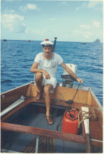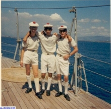 "Papafe", la maladie t'a emporté trop jeune et quand tes "copains d'à bord" l'on appris, ils ont éprouvé un immense chagrin. Mais nous savons que dans ta "chienne de vie" tu as au moins vécu une période heureuse. Cette période heureuse, nous avons eu le bonheur de la partager avec toi, à bord de l'Arcturus. (Commentaire Daniel Maurice. Photo : Lucien Kristofic)
