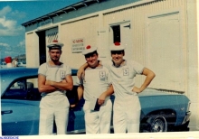 1968 : Les "MUSCLES" : Le Mot cuisi Pierre Dumont, Le QM2 missi Gilles Fatmi et le QM1 maneu André Le Maguer (Job, pour les intîmes)