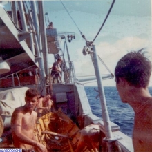 1er janvier 1968 : Sauvetage de Mr. Georges Sablé et de son fils adolescent. Embarquement de sa yole sur l'Arcturus.