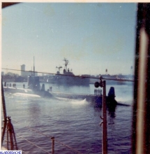 Embarqué en 1967, le QM2 Détec Morardet à remplacé le QM1 Détec Follin. Jean François Morardet était issu du "cours long" et admissible au grade de SM. Il venait du Cassard un "EE,CDF" (escorteur d'escadre, conducteur de flotilles)...Jean François s'exprimait beaucoup par sigles, c'est pourquoi nous l'avions amicalement surnommé "le cerveau". C'est lui qui m'a fait découvrir et apprécier le Johnny Walker "carte noire". J.F.M. était très apprécie de tous et je conserve de lui le meilleur souvenir. J.F. si tu lis ces lignes, fais nous signe. (commentaire : Daniel Maurice. Photo : Lucien Kristofic)