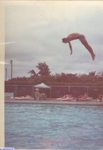 1969 : Transit de la Martinique à la métropôle : Lucien exécute un "saut de l'ange" (l'ange c'est le saut, pas Lucien !...) dans une piscine à Dakar.