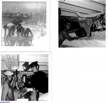 En haut à gauche : Entrée au bassin à Fort de France où nous faisions de bonnes pêches(Coupel, Liétard dit "Obélix et moi). Partie de rigolade, poste avant avec "Obélix". et Dumont notre cuisinier.