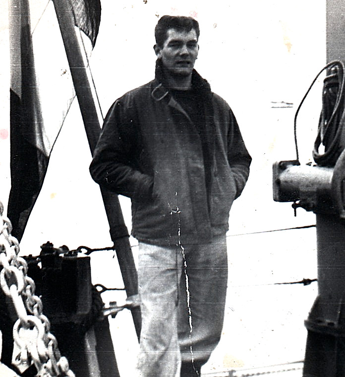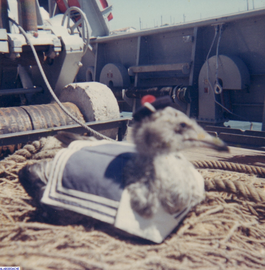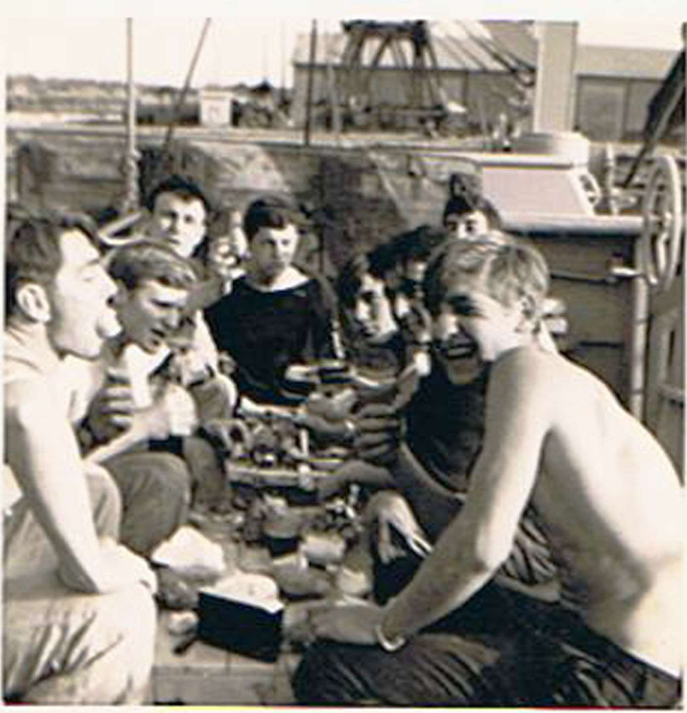 1968 Petit casse-croûte sur le pont. A gauche QM Tim Pondevie, à droite Bosco Guilloux (il me semble) Cantin de l'Ile d'Yeu. Si quelqu'un se reconnait, merci de le faire savoir