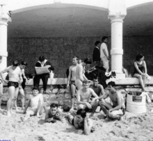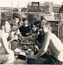 Eté 1967 : Quelques marins de Denébola profitant d'une escale à Pasarès pour bronzer à la plage. (photo : Jean Osa)