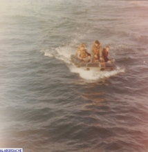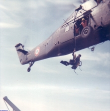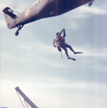 1967 : Hélitreuillage d'un plongeur sur la plage arrière du Denébola.