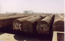 1967 : Billes de bois sur les quai La Pallice. Le commerce du bois provenant de l'Afrique noire était l'une des principales activités du port de La Pallice. La compagnie de navigation Delmas armait encore en 1966/1967 des "Liberty Ships" construits durant la seconde guerre mondiale. Ces cargos rustiques transportaient plus de 10.000 tonnes de bois en cales et en pontées. Il n'était pas rare, les jours de solde, de retrouver quelques marins endormis sous ces billes de bois, après une soirée imbibée à "l'ABC" ou au "Delmas bar", sur le quai éponyme. (Commentaire : Daniel Maurice. Photo : Collection Jean Osa)
