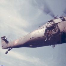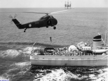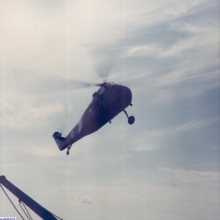 1967 : Un hélicoptère Sykorsky HSS 55 survole le Denébola pour un hélitreuillage. (Photos : Collection Jean Osa)