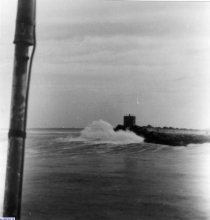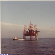 1967 : Le Denébola navigue à proximité de la plateforme de forage "Neptune-Gascogne", au large de Biscarosse. Ce n''était pas encore l'époque du slogan : "En France on a pas de pétrole, mais on a des idées", Pourtant nos dirigeants se préocupaient déjà de notre indépendance énergétique. Si en ce temps là , les shadocks pompaient... les compagnies pétrolières foraient... et avaient esperé durant quelques années que le sous-sol du golfe de Gascogne renfermerait un important gisement "d'or noir ' . Hélas, il n'en fut rien... (Commentaire Daniel Maurice. Photo : Jean Osa)