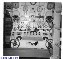 Le tableau de commande de la machine arrière d'un dragueur de mines "Pescara" tel que le Denèbola.