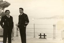 Plage arrière de La Combattante : PM Chef de Quart.DE BUISSON et le Mtre Mécanicien PAPILLON