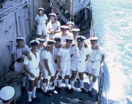|  Rassemblement des néophites plage avant, passage de la ligne 1975.
