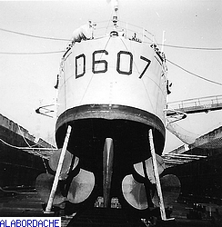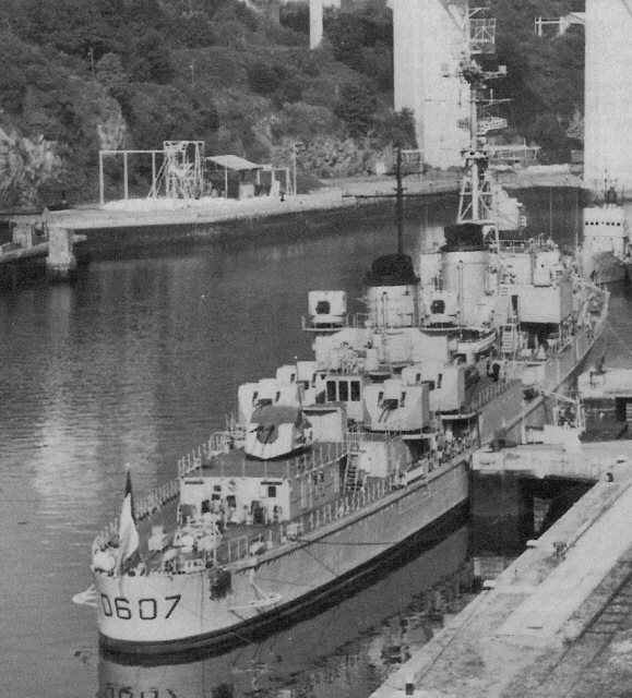 Le '' GUICHEN'' désarmé à l'entrée de la darse de la BAN LANVEOC-POULMIC en 1965