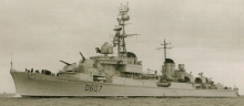 1965 : Le Guichen désarmé à l'entrée de la darse de la BAN LanvéocPoulmic.