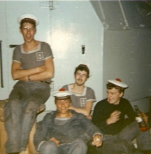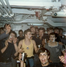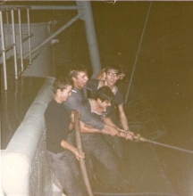 Le TCD Orage, au poste n° 5 sous la grande grue provisoire, en Penfeld, à Brest, le 21 février 1979, élongé par le TCD Ouragan. (photo Jean-Paul Coquinot). A gauche Le Bourdonnais