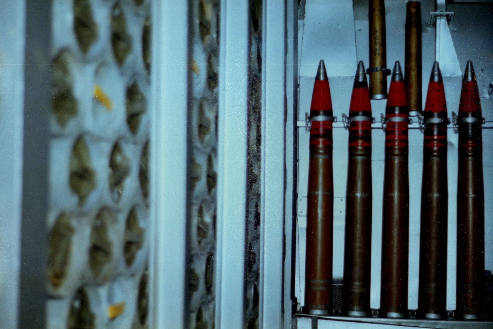 Photo prise en 1960 à l'arsenal de Lorient. Usinage du fût de la rampe Malafon. Guy BOUAT