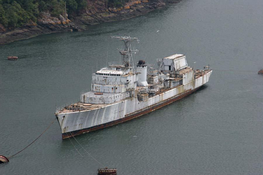 |  L'Escorteur d'Escadre La Galissonniére sert maintenant de brise-lame pour le bassin de l'école naval à Lanvéoc-Poulmic